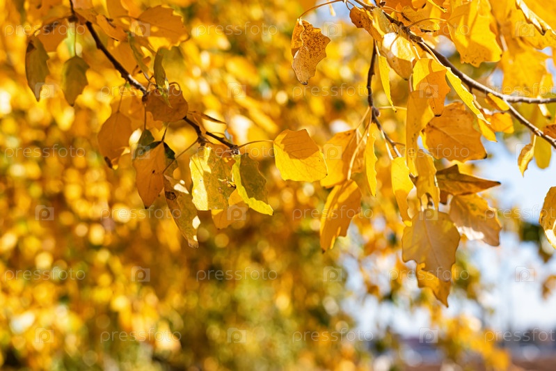 Желтые осенние листья падают с кроны