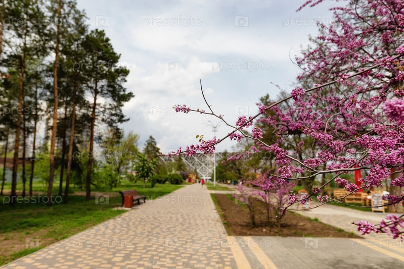 Красивое цветение весной с большим количеством маленьких розовых цветов