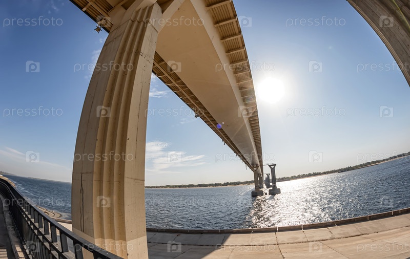 Вид снизу строящегося моста через реку