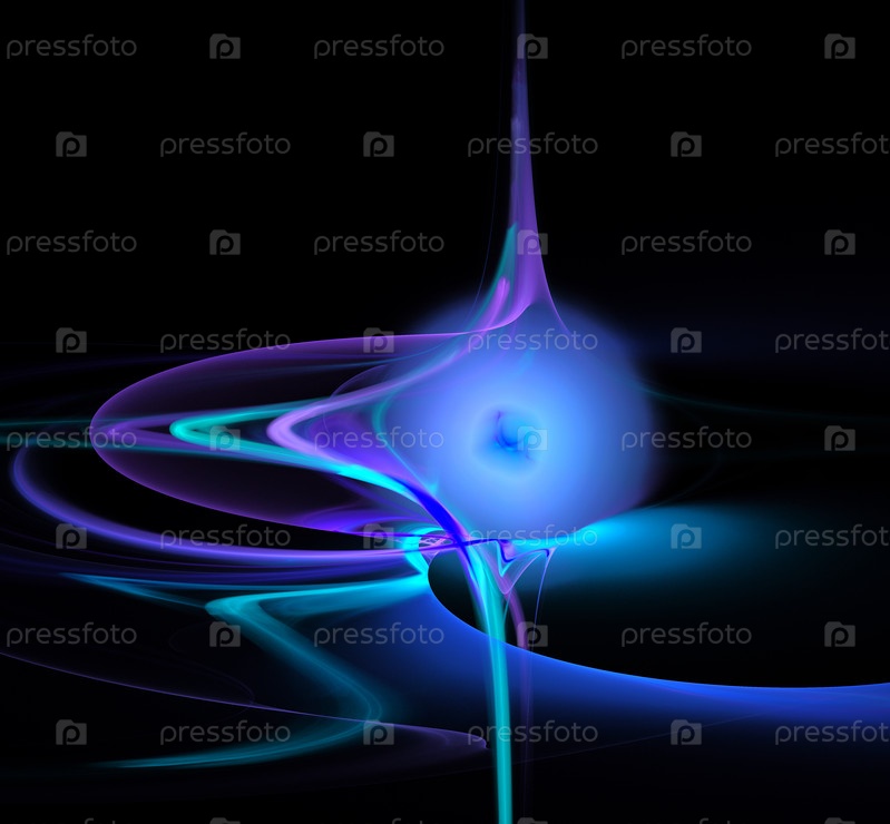 Круги и волны. хаотичное движение. Абстрактная фрактальная графика. Элемент дизайна. Синие и фиолетовые оттенки цвета. Черный фон