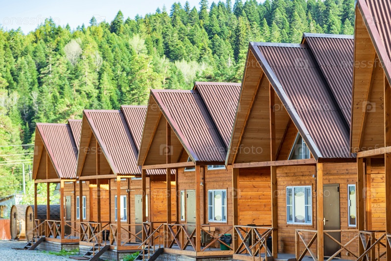 Деревянные дома небольшой комфортной базы отдыха в горах