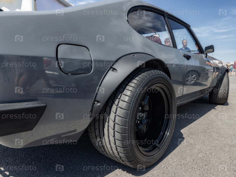 Серийные автомобили с тюнингом и улучшенными двигателями на выставке под открытым небом