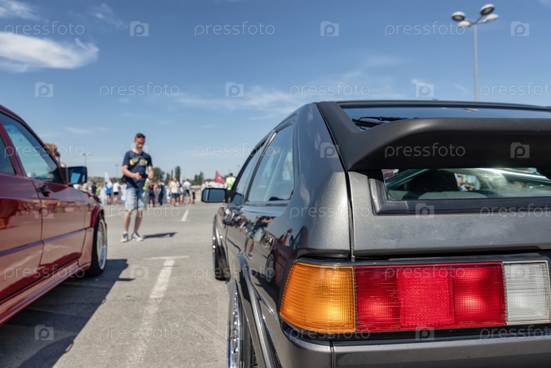 Серийные автомобили с тюнингом и улучшенными двигателями на выставке под открытым небом