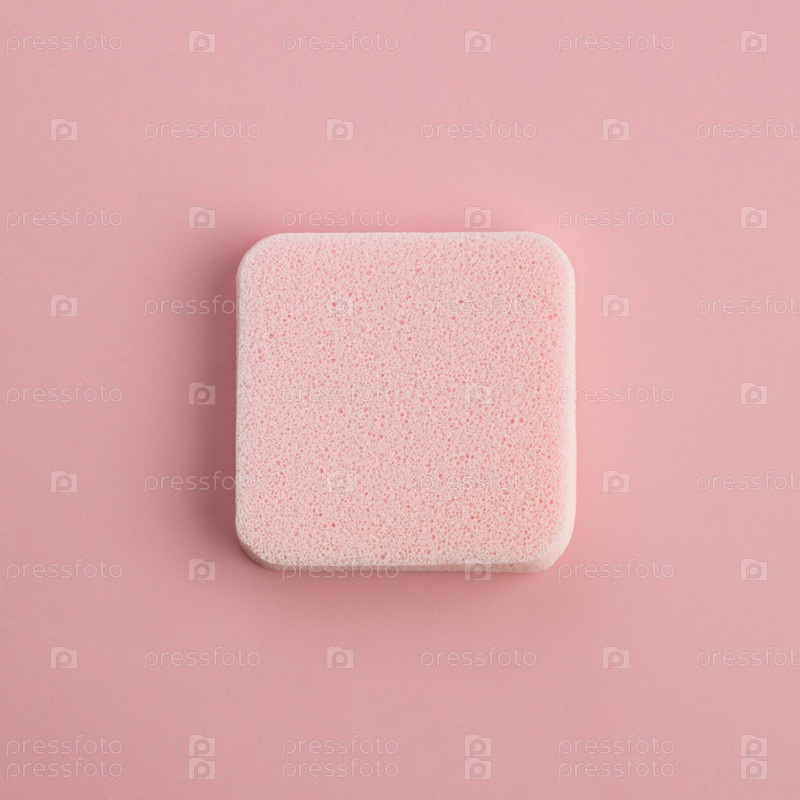 Косметическая губка на розовом фоне. Вид сверху