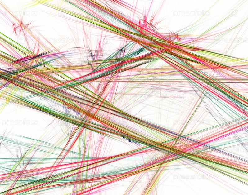 Переплетение нитей, веток, лучей. Абстрактная фрактальная графика. Зеленые и красные оттенки цвета. белый фон