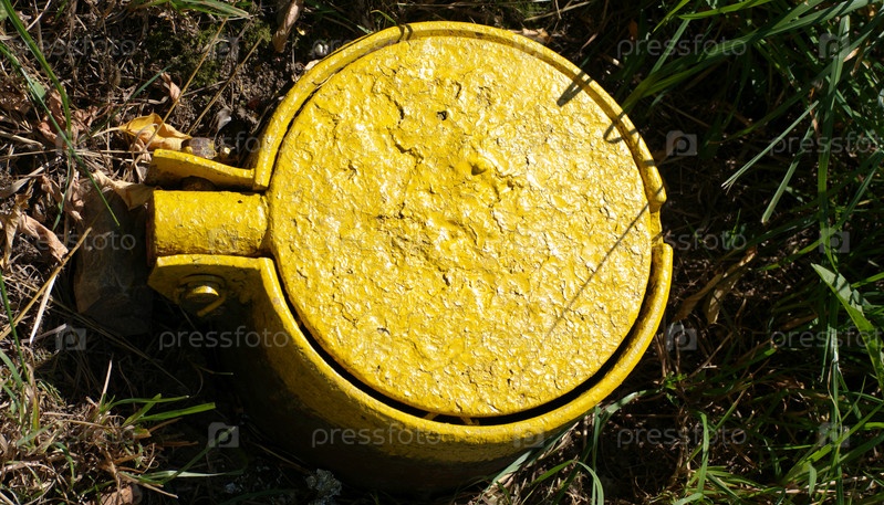 Желтый газовый люк в сухой солнечный летний день
