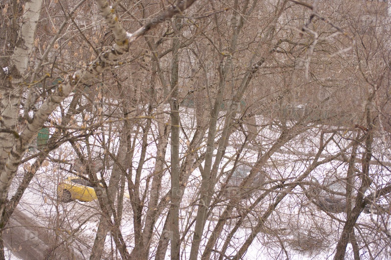 Зима в городском дворе в пасмурный день