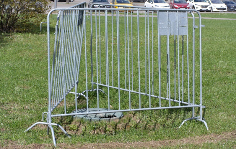 Забор вокруг люка в парке в сухой солнечный летний день