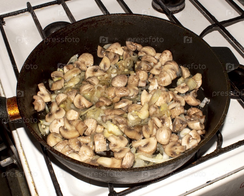 Жареный гриб с луком. жареные грибы background.Фон из жаренных грибов. Зажаренные грибы с луком