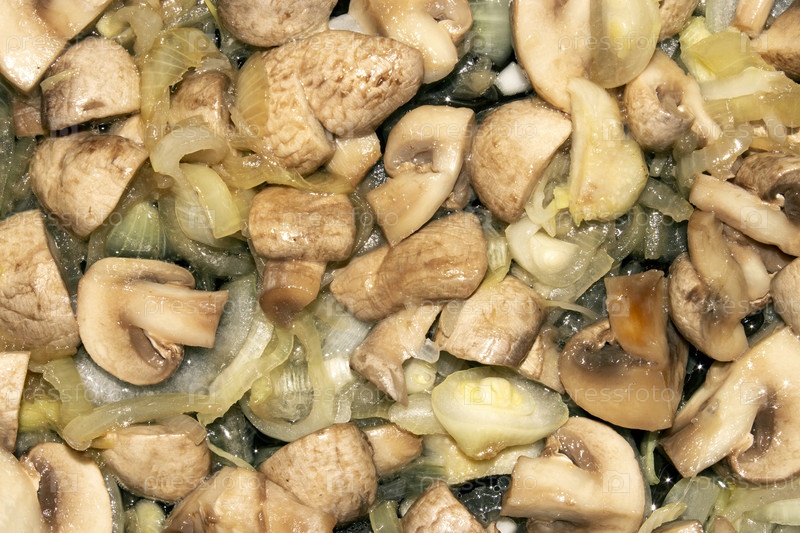Жареный гриб с луком. жареные грибы background.Фон из жаренных грибов. Зажаренные грибы с луком