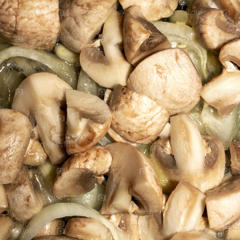 Жареный гриб с луком. жареные грибы background.Фон из жаренных грибов. Зажаренные грибы с луком