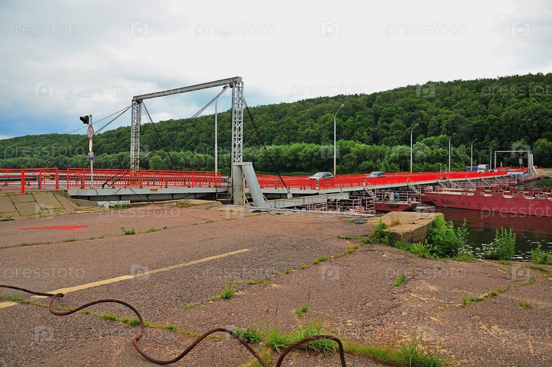 Везд на разводной мост с механизмом подъема секций и место примыкания старого моста