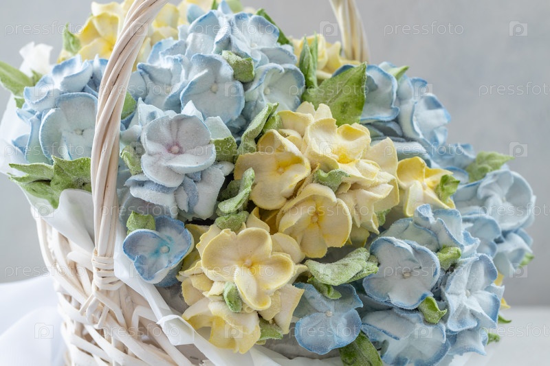 Зефирный букет цветов в подарочной коробке на светлом фоне