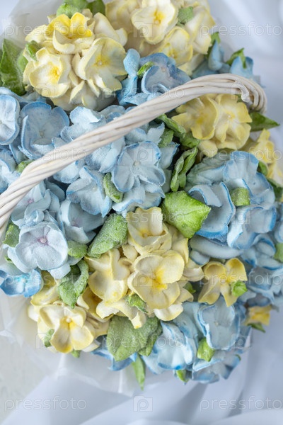 Зефирный букет цветов в подарочной коробке на светлом фоне