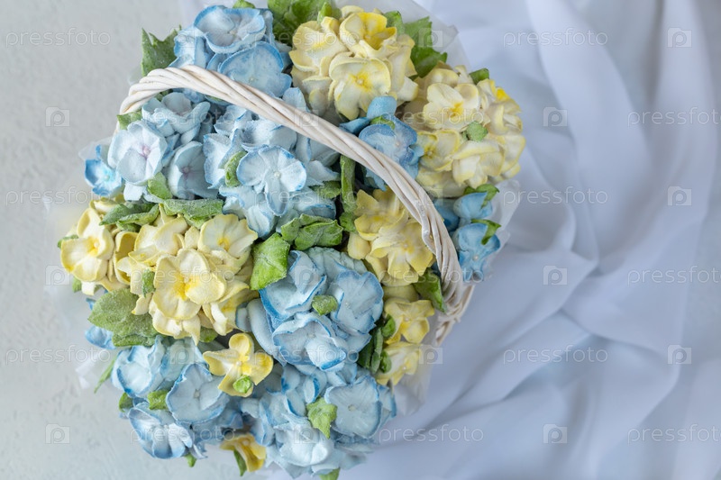 Зефирный букет цветов в подарочной коробке на светлом фоне