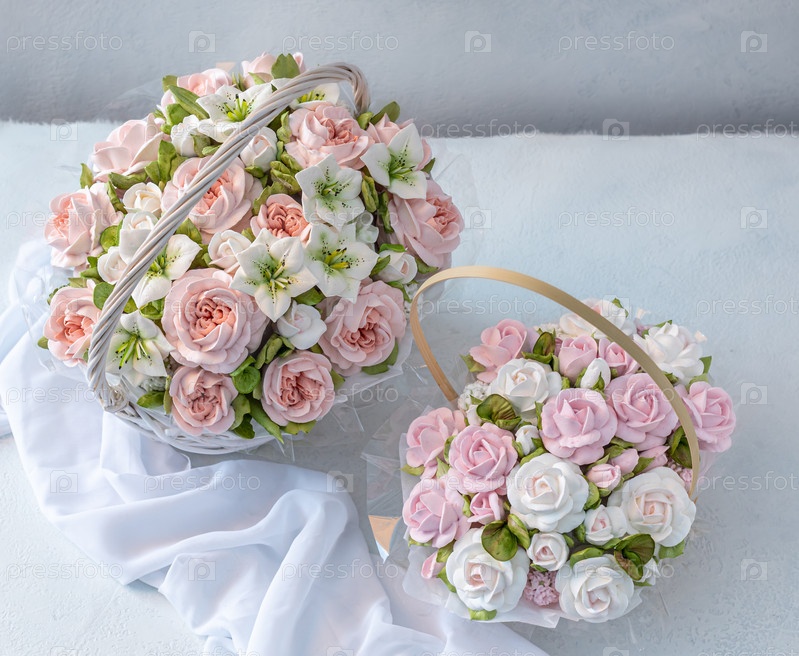 Зефирный букет цветов в подарочной коробке на светлом фоне