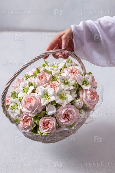 Зефирный букет цветов в подарочной коробке на светлом фоне