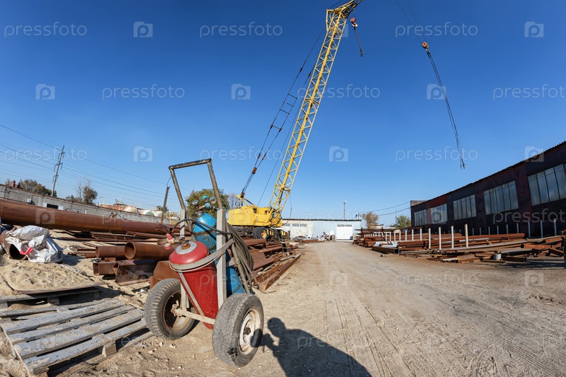 Тележка с баллонами со сжиженным газом на промплощадке