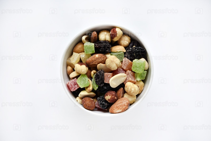 Ореховая смесь в чашке. Вкусный перекус из орехов и сухофруктов