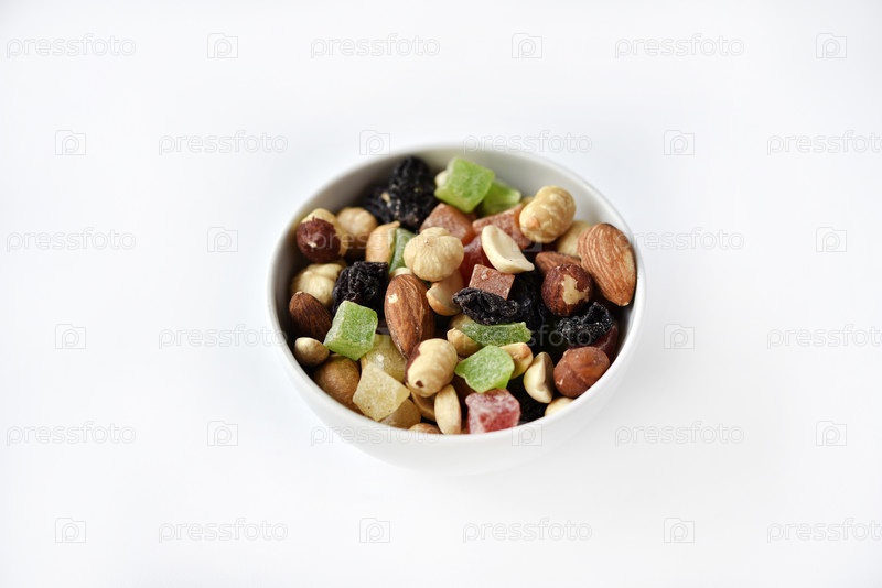 Ореховая смесь в чашке. Вкусный перекус из орехов и сухофруктов