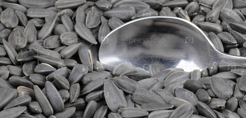 Фон семечки подсолнуха и чайная ложка