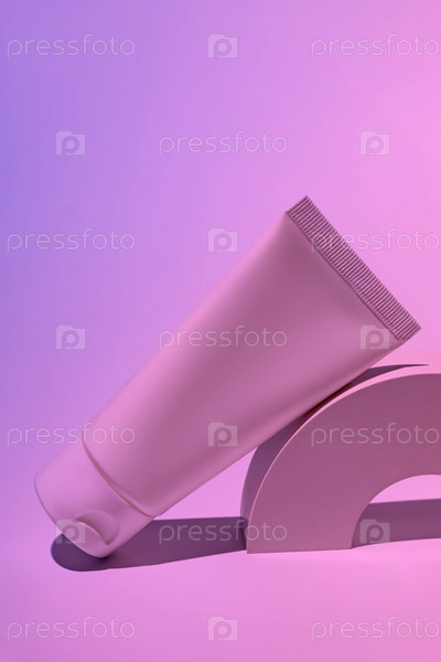 Макет косметического продукта. Оздоровительная упаковка. Брендинг спа. Косметический неоновый розовый фон. Бутылка крема, лосьон, мусс, моющее средство, шампунь для ухода за кожей. Копировать пространство