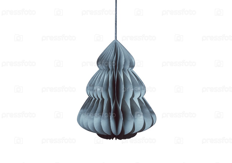 Бумажная елочная игрушка в форме елки, изолированная на сером фоне