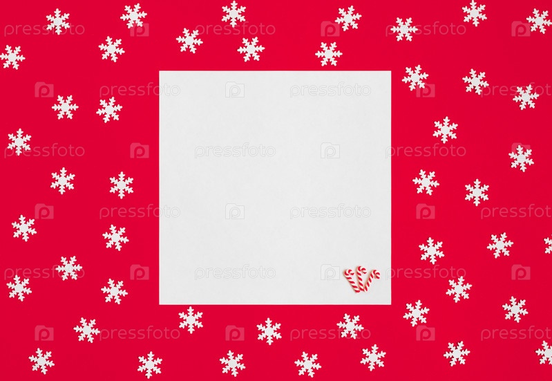 Рождественский макет со снежинками на красном фоне. С Новым Годом. Место для текста. Зимняя концепция. Открытка