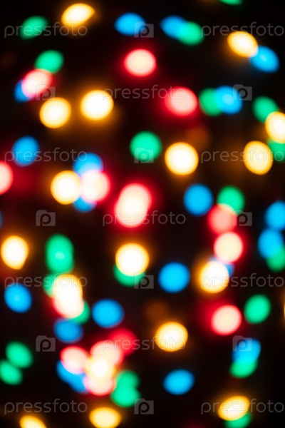 Разноцветный абстрактный фон боке. Красочная текстура рождественской гирлянды