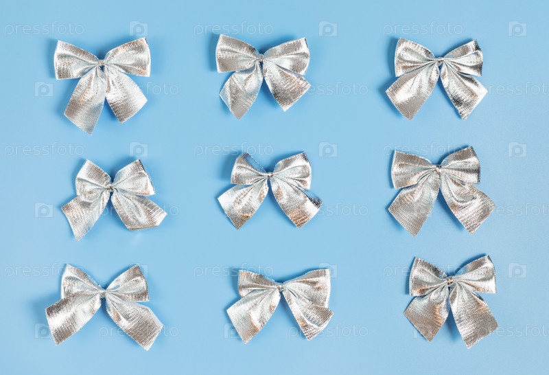 Рождественский узор с серебряными бантами на пастельно-синем фоне