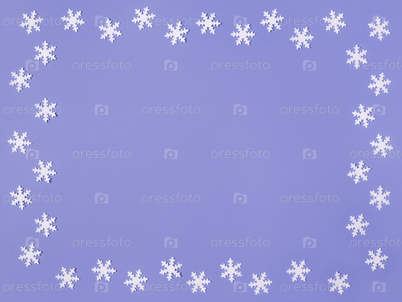 Рождественская рамка с белыми снежинками на фиолетовом фоне. Место для текста. Модный цвет очень пери в 2022 году