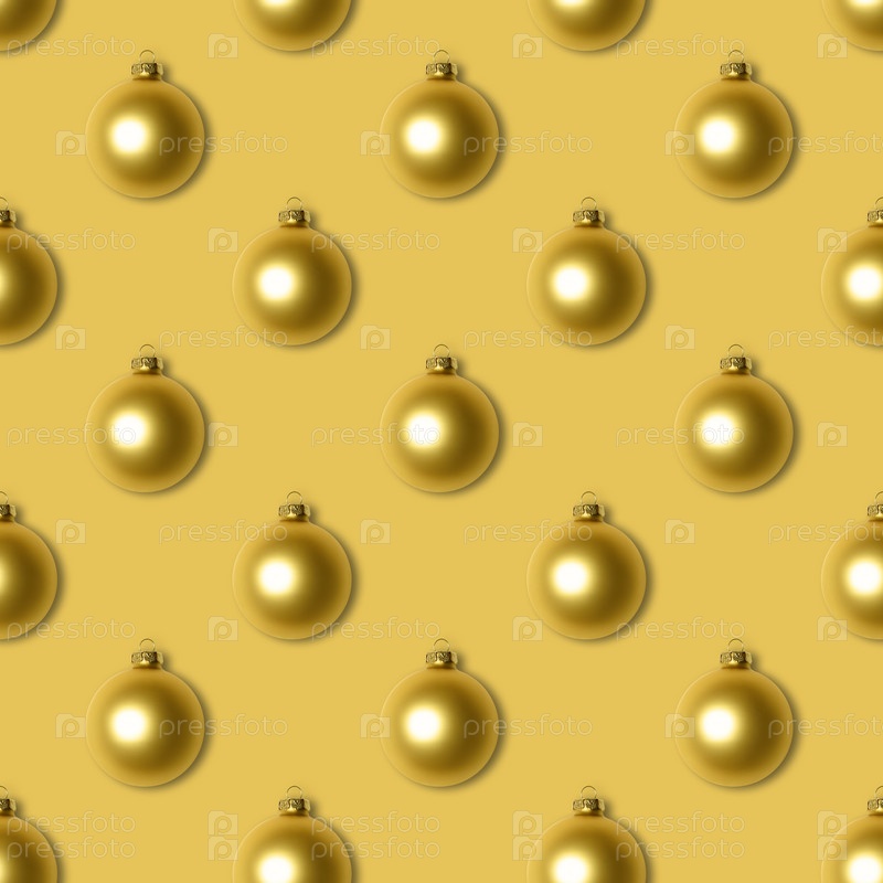 Бесшовный узор с золотыми елочными шарами на желтом фоне. Цвет 2021 года. Светящийся фон
