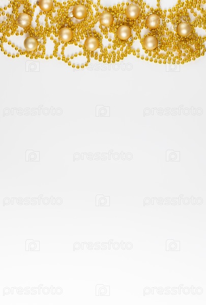 Рождественская граница с золотой гирляндой на белом фоне. С Новым Годом. Место для текста. Зимняя концепция. Открытка