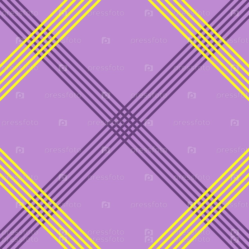 Бесшовный рисунок с желтым и темно-фиолетовым геометрическим орнаментом на фиолетовом фоне