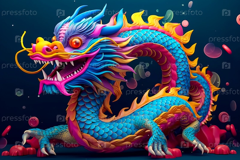 Красочный китайский дракон в фантастической форме. Генеративный ИИ. Иллюстрация высокого качества