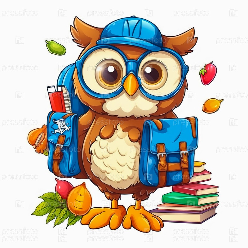 Иллюстрация совы со школьными принадлежностями. Концепция школьного образования. Генеративный ИИ