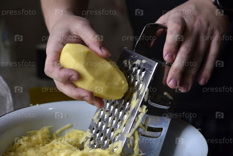 Очистка свежего картофеля. Резка картофеля. Нарезка картофеля на терке. Железная терка для овощей