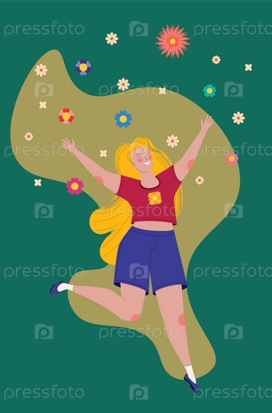 Девушка прыгает с цветами