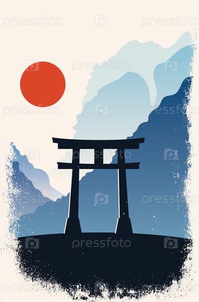 Горы и ворота тории минимализм