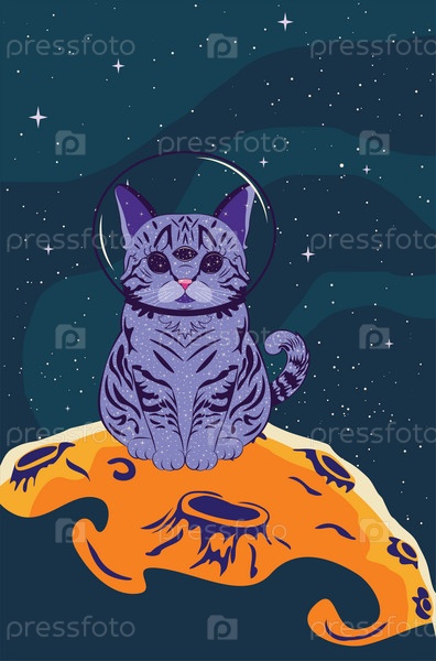 Инопланетный кот сидит на планете