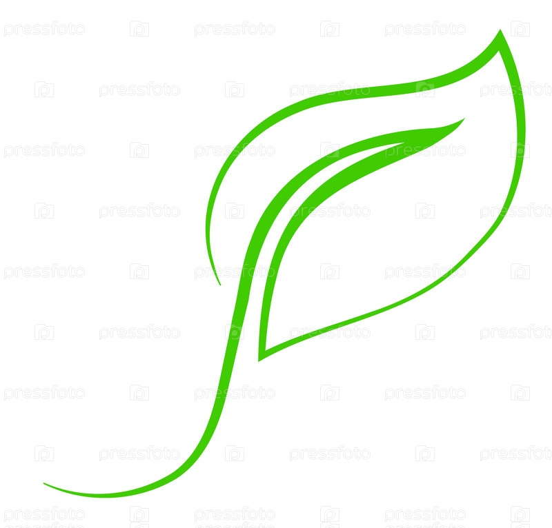 Зеленый лист, символизирующий эко, зеленую энергию, экологию. Векторное изображение, эскиз в стиле линейного искусства