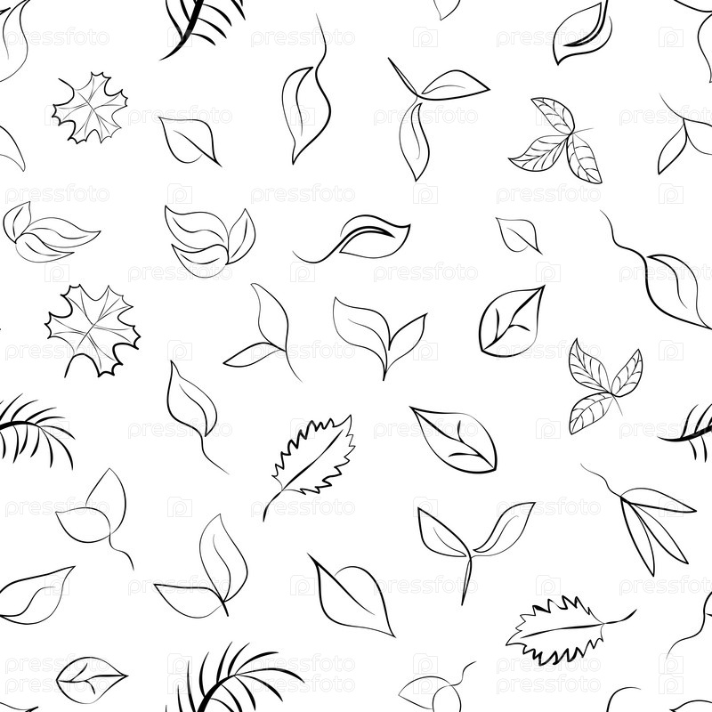 Бесшовный узор из листьев, символизирующих эко, зеленую энергию, экологию. Векторное изображение, эскиз в стиле линейного искусства