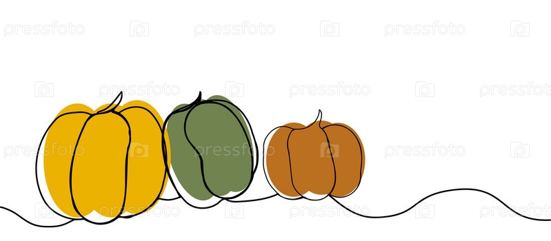 Спелые тыквы разных цветов в стиле линейного искусства, баннер с копией пространства на белом фоне, концепция счастливого хэллоуина, осенний урожай, хэллоуин. Дизайн рекламы, листовок, приглашений, спелых тыкв разных цветов в стиле линейного искусства, ба