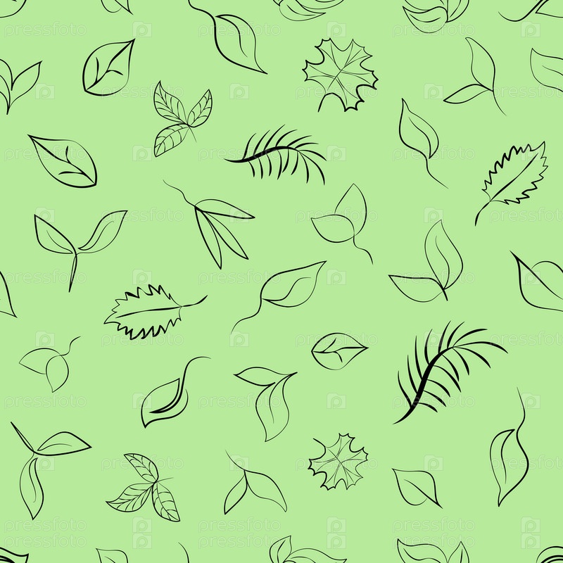 Бесшовный узор из зеленых листьев, символизирующих эко, зеленую энергию, экологию. Векторное изображение, эскиз в стиле линейного искусства