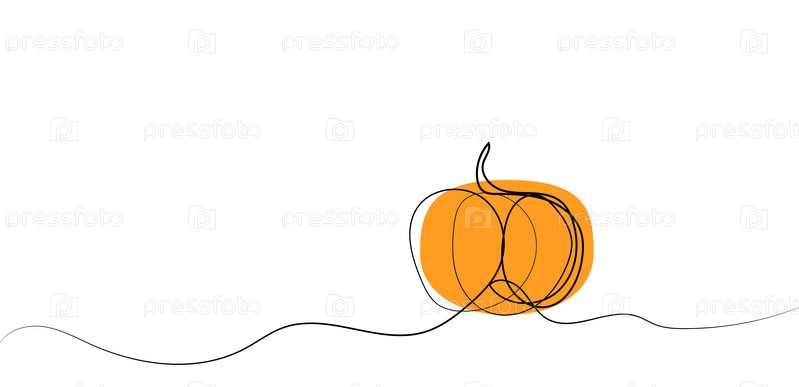 Оранжевая векторная тыква в стиле линейного искусства, баннер изолирован на белом фоне с копировальным пространством и концепцией счастливого хэллоуина. Минимализм и простота, осень