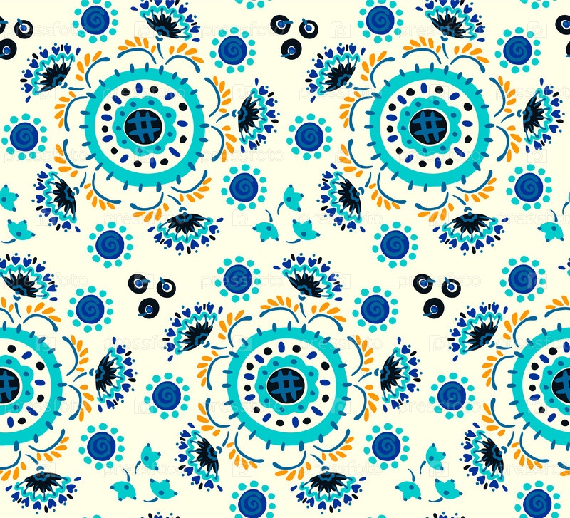 Бесшовный узор с фантазийными цветами, этнический вращающийся повторяющийся дизайн ткани и плитки, натуральные обои, иллюстрация завитка цветочного декора. Пейсли печать рисованной элементы.Украинский узор