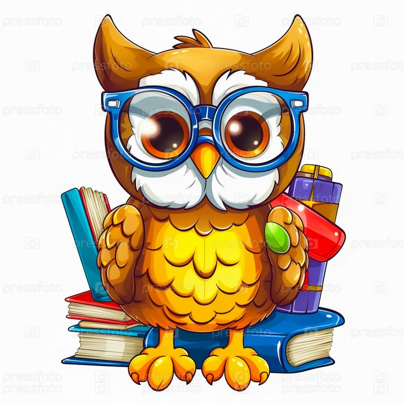 Иллюстрация совы со школьными принадлежностями. Концепция школьного образования. Генеративный ИИ
