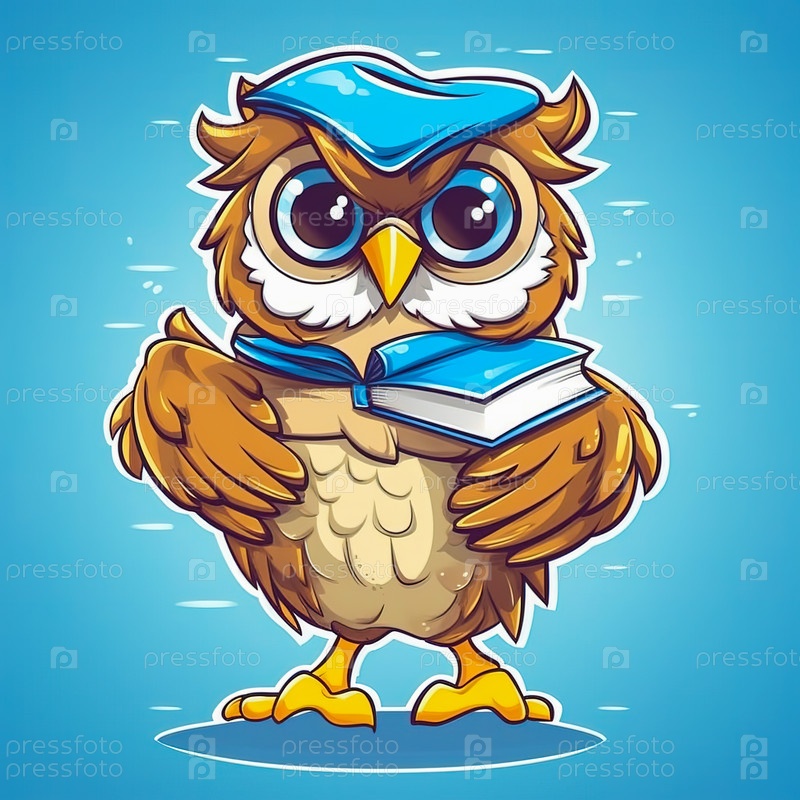 Иллюстрация совы со школьными принадлежностями. Концепция школьного образования. Генеративный ИИ