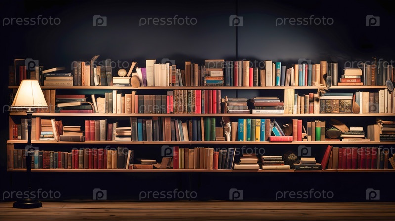 Полки с книгами в библиотеке. Генеративный ИИ