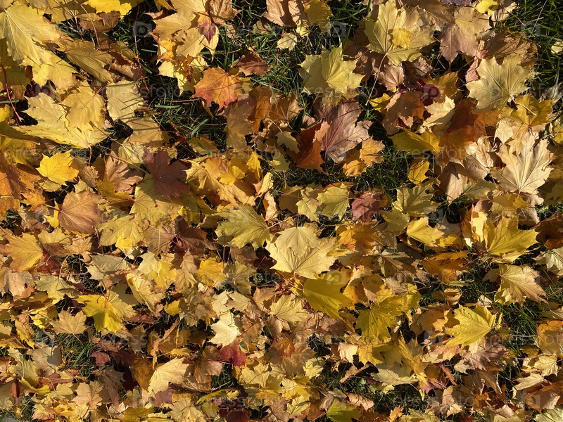 Ковер из желтых кленовых листьев в осенний сухой солнечный день